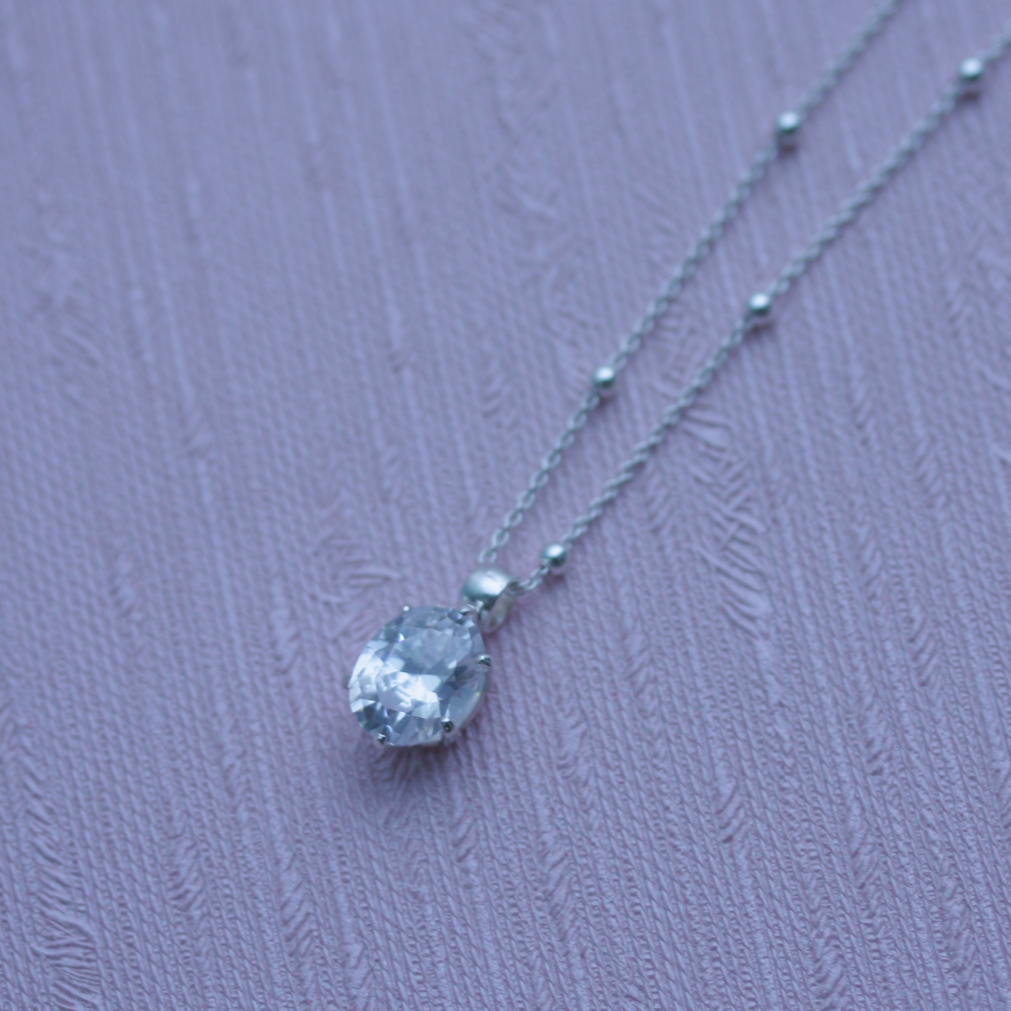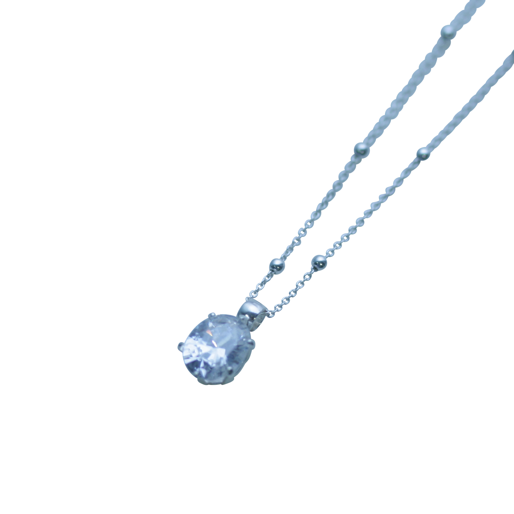 Colgante circonita en plata de ley 925. Lo acompaña una cadena de bolitas en plata de ley 925 de largo de 40 cm.