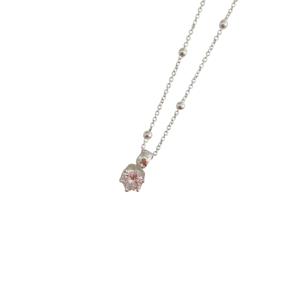 Colgante mini circonita en plata de ley 925. Lo acompaña una cadena de bolitas en plata de ley 925 de largo de 40 cm.